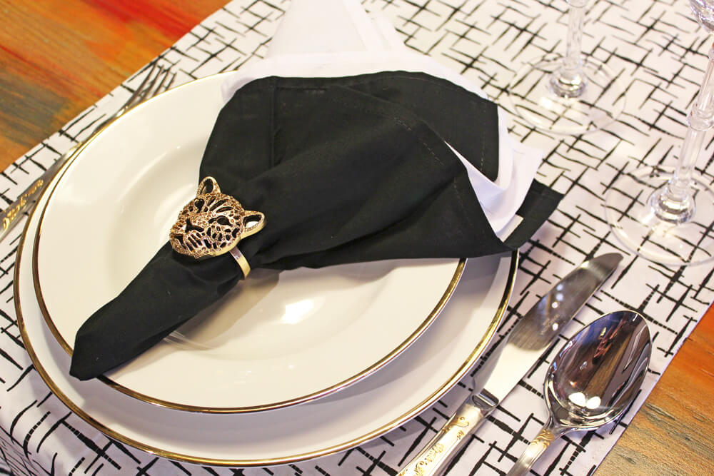 As regras mais formais dizem que ele deve ser posicionado à esquerda do prato, ao lado dos garfos. Nesse caso, é possível utilizar uma dobra simples ou colocar um toque de carinho, com flores, por exemplo. Tudo depende da ocasião.