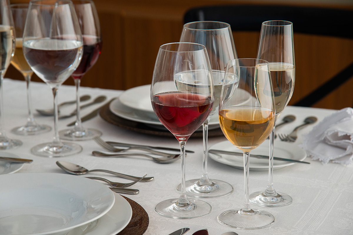 É importante ressaltar que você não precisa colocar todas as taças à mesa. Veja quais tipos de vinhos você quer servir e utilize as taças correspondentes.