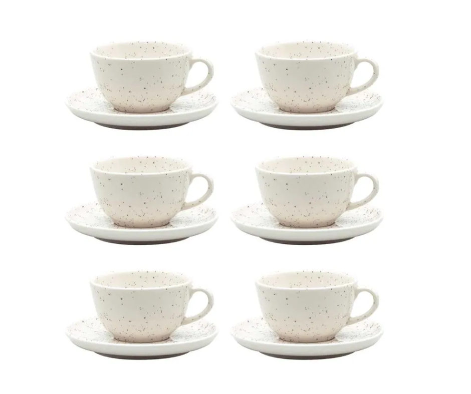 Conjunto de 06 Xícaras de Chá com Pires Flat Chuvisco Oxford