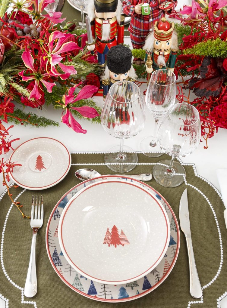 Para celebrar o Natal e despertar na família o verdadeiro sentido desta data, nada melhor do que arrumar a nossa casa com uma mesa mais do que especial! Foi assim que Thaís Senna, do Vamos Receber descreveu sua inspiração para a montagem de duas mesas natalinas lindíssimas, usando as louças de Natal da Oxford. Confira os detalhes da produção e das cerâmicas Jolly e Merry. Aqui utilizamos pratos rasos e de sobremesa na decoração Merry. O segredo da mesa perfeita está nos detalhes Gostamos quando a tradição do Natal está representada em detalhes e elementos da decoração. Em acessórios e