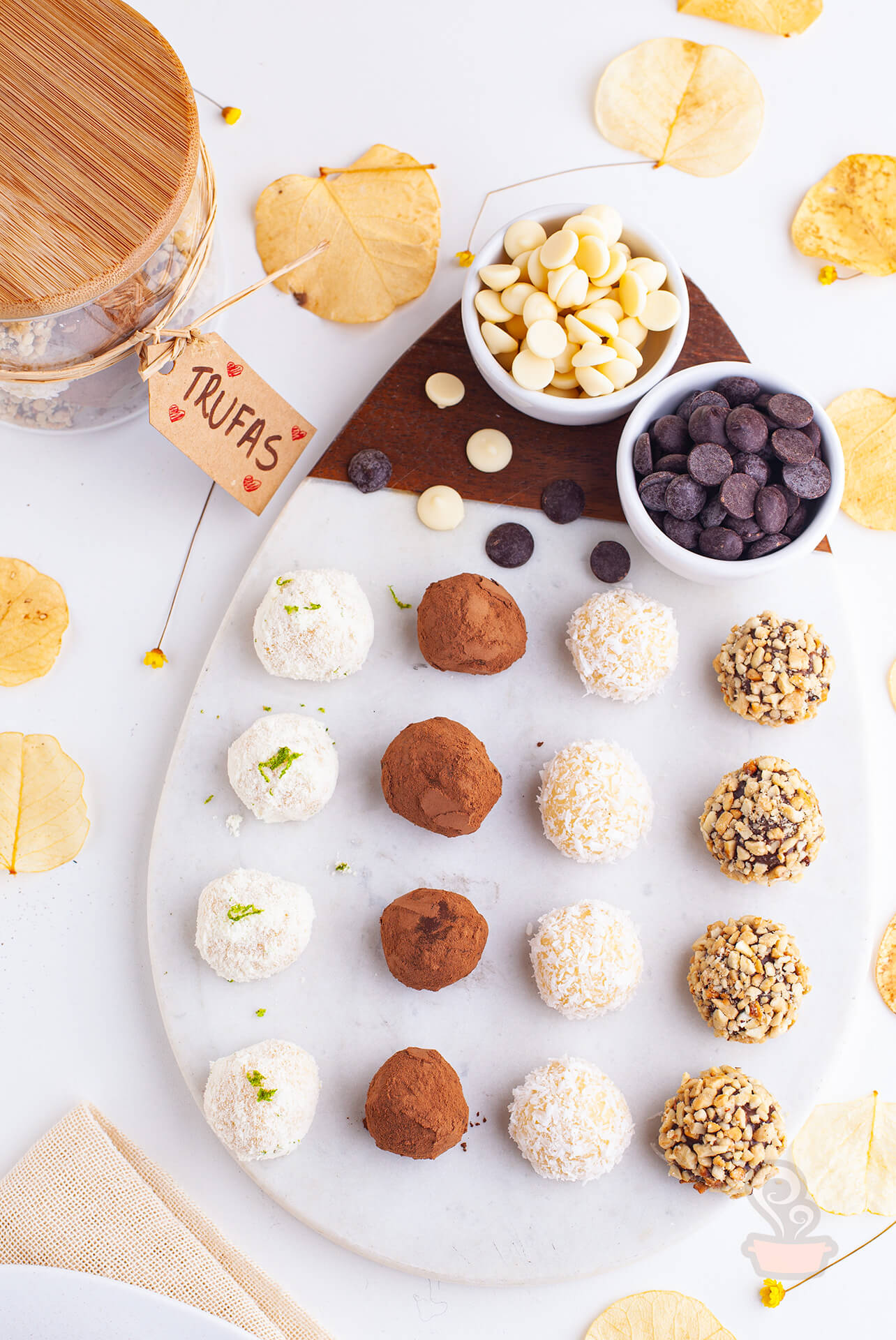 É provável que só de olhar as fotos dessas trufas de chocolate você já tenha vontade de correr para a cozinha. Afinal, com 2 bases super simples você vai aprender 4 sabores deliciosos do doce e claro, ainda vai poder abusar da criatividade para criar uma variedade maior ainda.